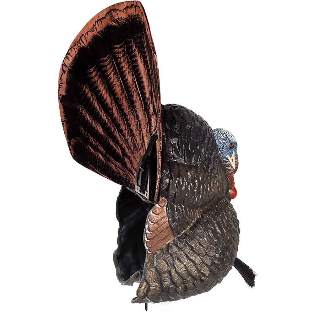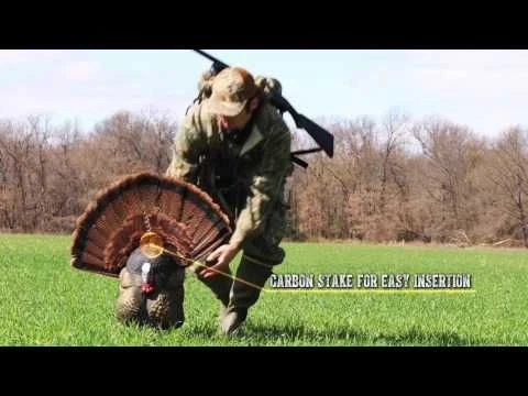 Setup is simple thanks to an attached carbon stake and compact size that make getting into field position fast and easy. Use the supplied folding tail fan or easily add the real deal. It’s a flashy invitation for a fight that a boss gobbler won’t tolerate.