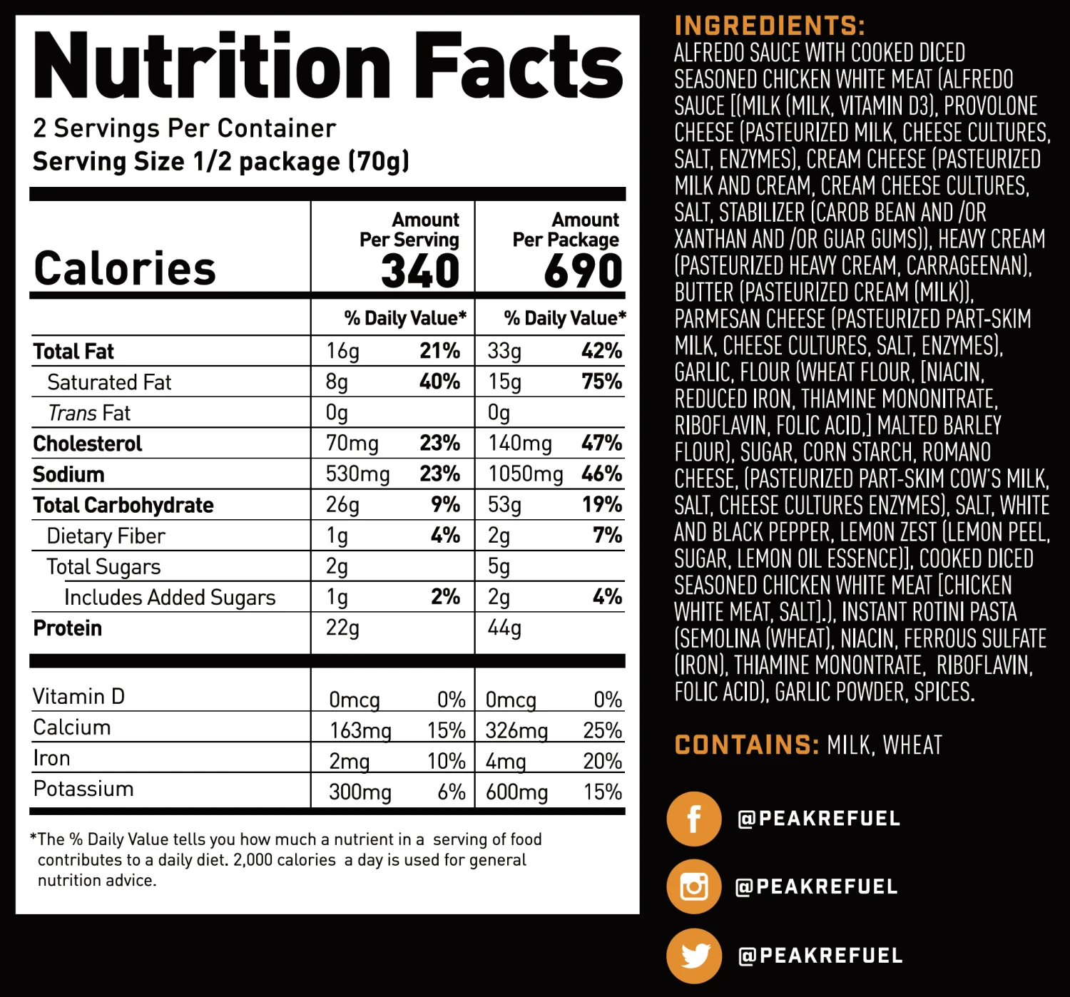 - Chicken Alfredo Pasta: White Chicken with Pasta Noodles in Alfredo Sauce