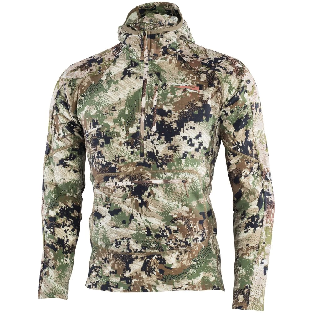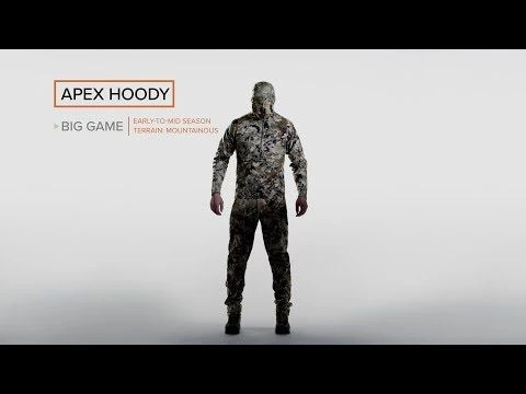 The Apex Hoody combines the benefits of merino wool and nylon in a specialized design purpose-built for big game pursuits. The merino-nylon blend of this merino wool camo hoodie offers natural moisture and odor management as well as comfort and noise reduction while retaining great stretch for navigating technical terrain. Reinforcement in the shoulders, arms and elbows will withstand years of abuse and removable elbow pads buffer long stalks and glassing sessions on unforgiving vantages.